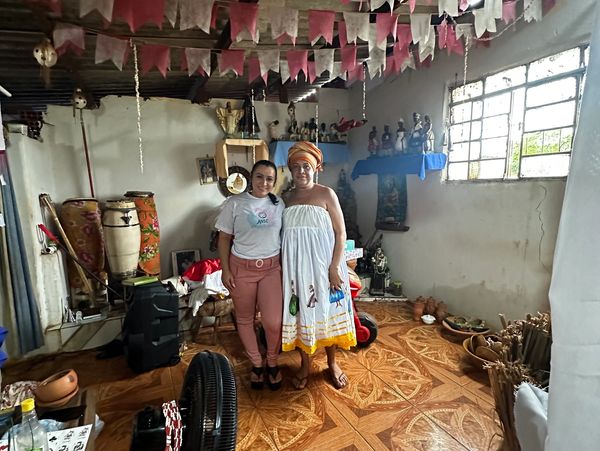 Visitamos o terreiro da mãe Tauane e na ocasião conversamos sobre a intolerância religiosa e a necessidade da divulgação das religiões de matriz africana enquanto herança da ancestralidade africana no Brasil.